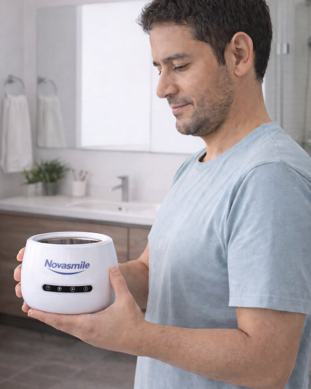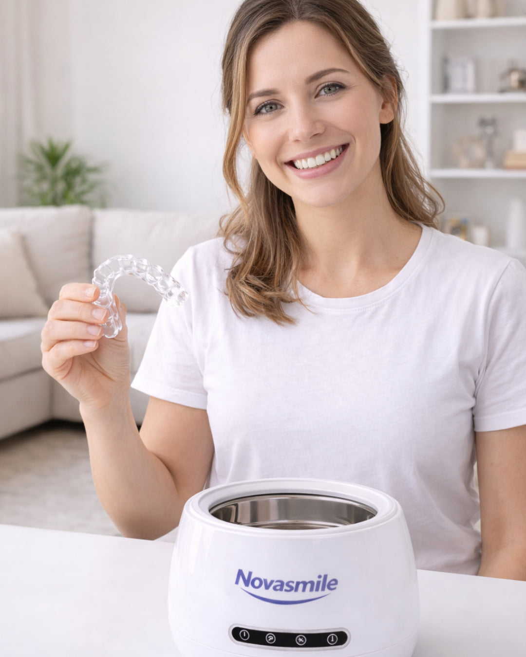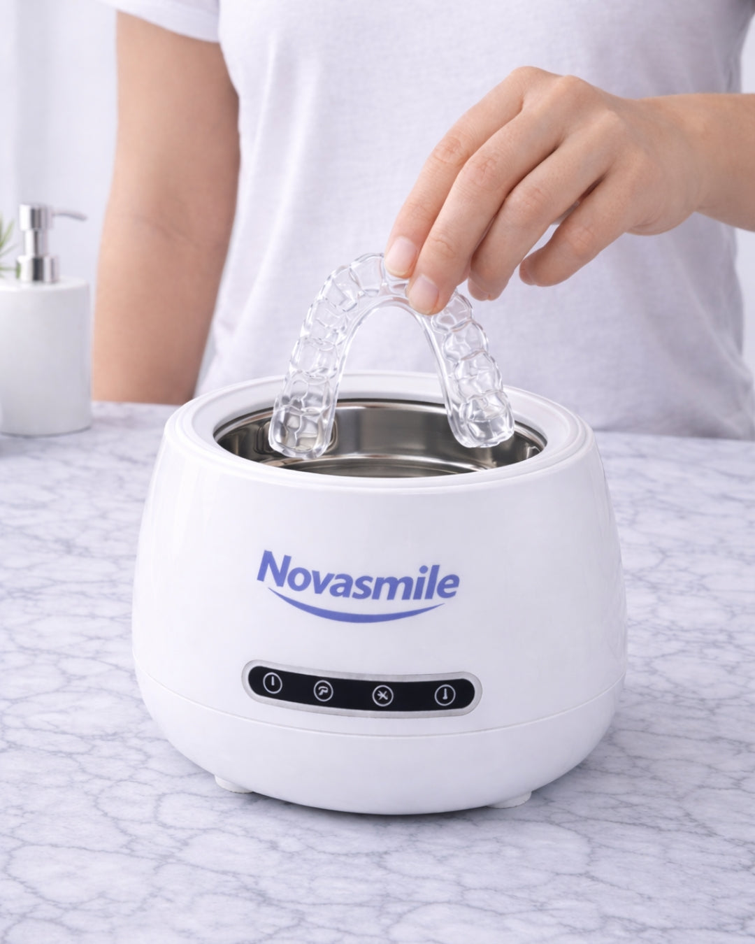 Novasmile utiliza limpieza ultrasónica de 45 kHz, la misma tecnología que se usa en clínicas dentales, para limpiar a nivel microscópico.